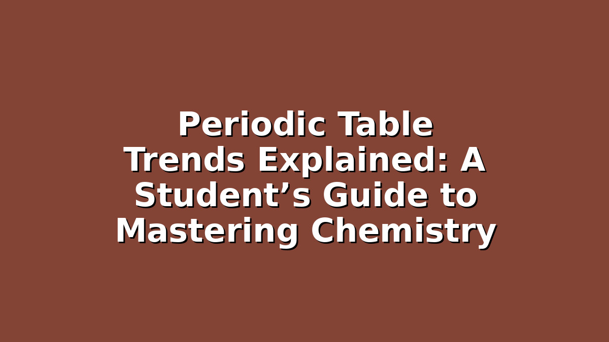 Mastering periodic table trends is a stepping stone to excelling in chemistry. Understanding how atomic radius, ionization energy, and electronegativity change across periods and down groups enables you to predict element behavior confidently. Remember to break down each trend, use visual and mnemonic tools, and apply concepts through practice questions. With consistent study and the right strategies, you’ll be ready to tackle exam questions with ease. Keep a positive mindset, and know that each step you take deepens your chemistry knowledge and improves your skills.