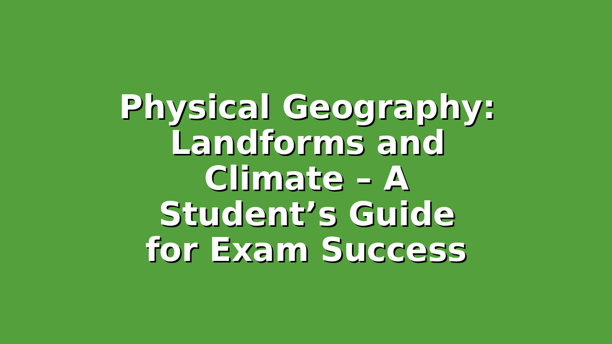 Physical geography, particularly the study of landforms and climate, is a fascinating and vital subject for students gearing up for exams. By understanding key landforms and how climate works—along with their interactions—you develop a comprehensive view of Earth’s natural systems. Remember, success comes from consistent study, active engagement with materials, and applying knowledge through practice.